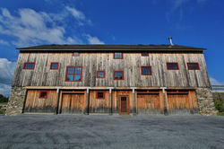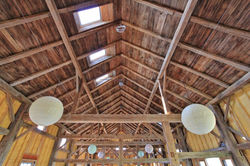 This barn was dismantled, restored and moved 100 feet to its present location. To restore the barn to its original height, 26 posts were extended using Beech timbers.